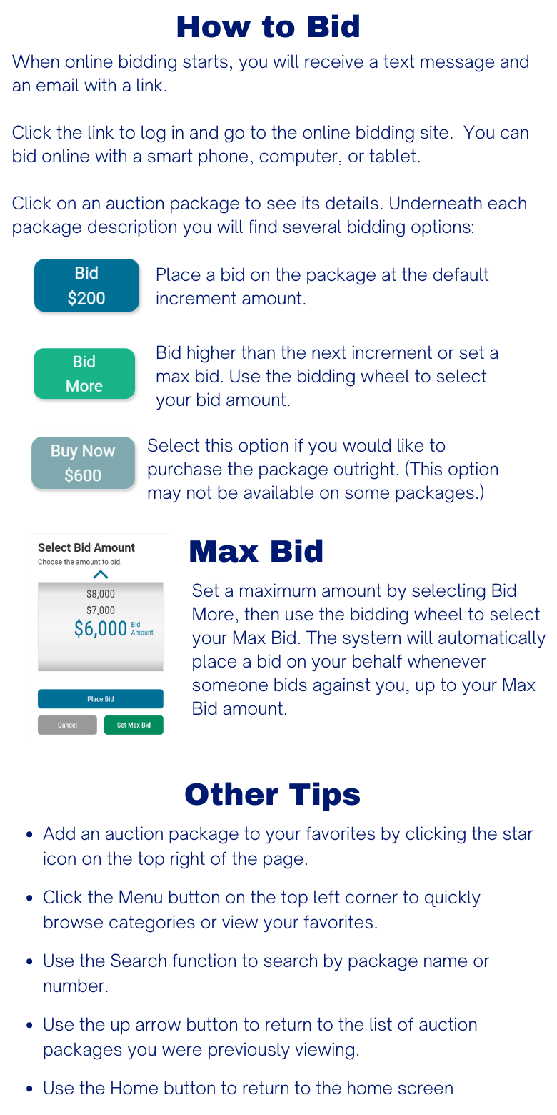 - Enjoy the broadcast and use your mobile phone or other device to bid in the auction and make donations.